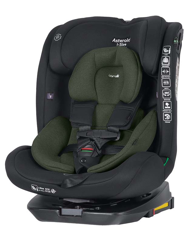 A Cadeira Auto Asteroid i-Size oferece uma solução universal para o transporte de crianças e cumpre a moderna norma i-Size. Além disso, os fabricantes equipam o modelo com proteção contra impactos laterais, sistema de fixação Isofix, Top Tether (fita de ancoragem) e rotação de 360°. Adicionalmente, inclui um fecho extra para o cinto de segurança.
