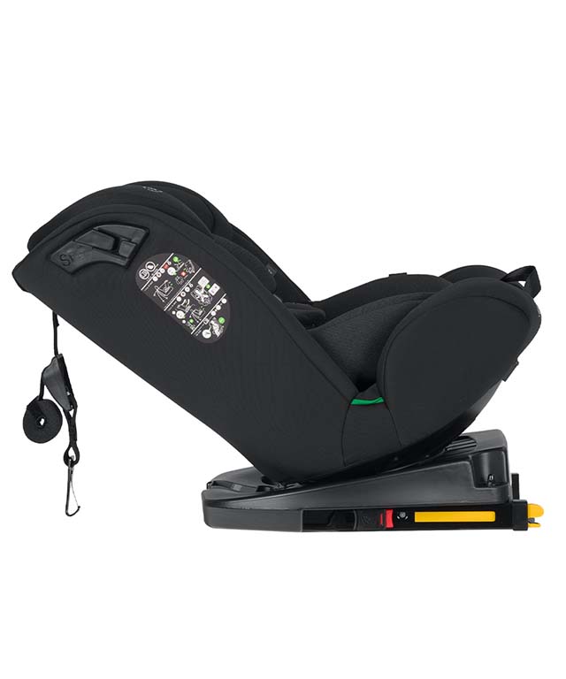 Para exemplificar, a instalação da cadeira permite transportar crianças desde os 40cm até 150cm, de acordo com a norma europeia i-SIZE R129/03. Da mesma forma, o sistema oferece um ângulo máximo de reclinação de 145°, garantindo maior conforto.