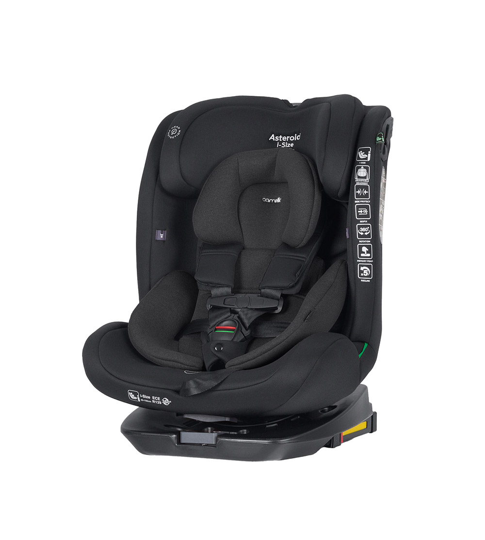 A Cadeira Auto Asteroid i-Size oferece uma solução universal para o transporte de crianças e cumpre a moderna norma i-Size. Além disso, os fabricantes equipam o modelo com proteção contra impactos laterais, sistema de fixação Isofix, Top Tether (fita de ancoragem) e rotação de 360°. Adicionalmente, inclui um fecho extra para o cinto de segurança.