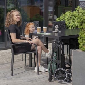 - Um carrinho confortável para todas as estações com uma estrutura segura e dobragem rápida.