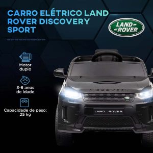 - Carro elétrico de 12V com licença Land Rover Discovery Sport, ideal para uma condução realista.