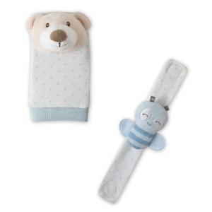Lindos e alegres chocalhos para pulso e pé do bebé em formato de pulseira e meia.
