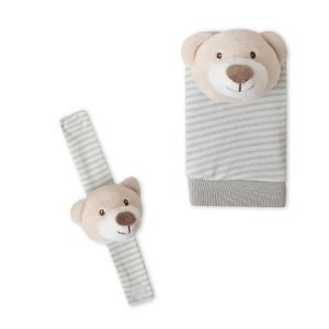 Lindos e alegres chocalhos para pulso e pé do bebé em formato de pulseira e meia.