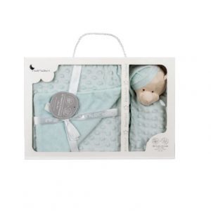 Manta extra macia, com toque aveludado e textura em relevo, ideal para uso no carrinho e no berço. Acompanhada por um Dou Dou suave e amoroso a combinar com o cobertor.