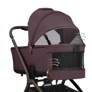 • Capota com extensão com fecho, protetor solar e janela de ventilação;