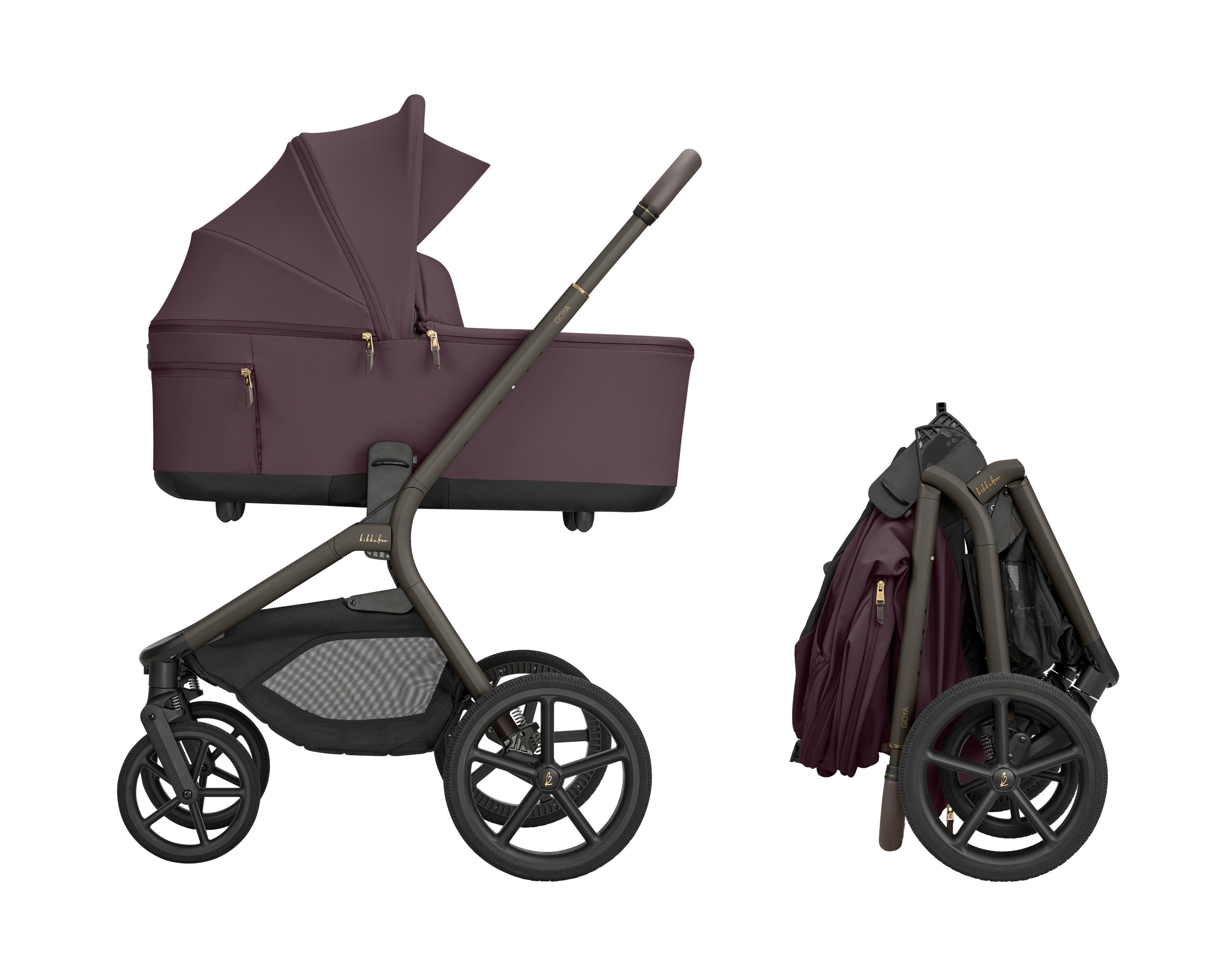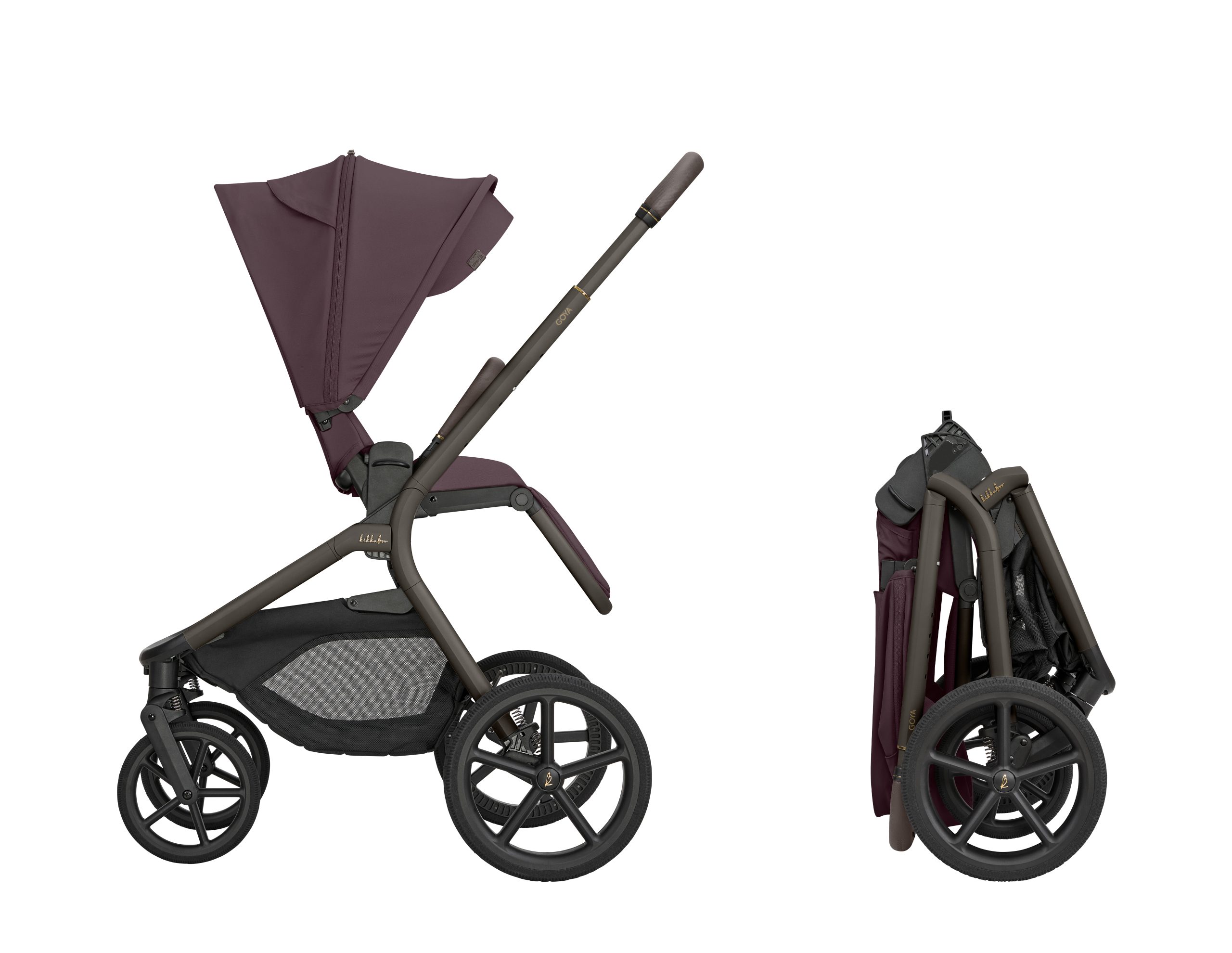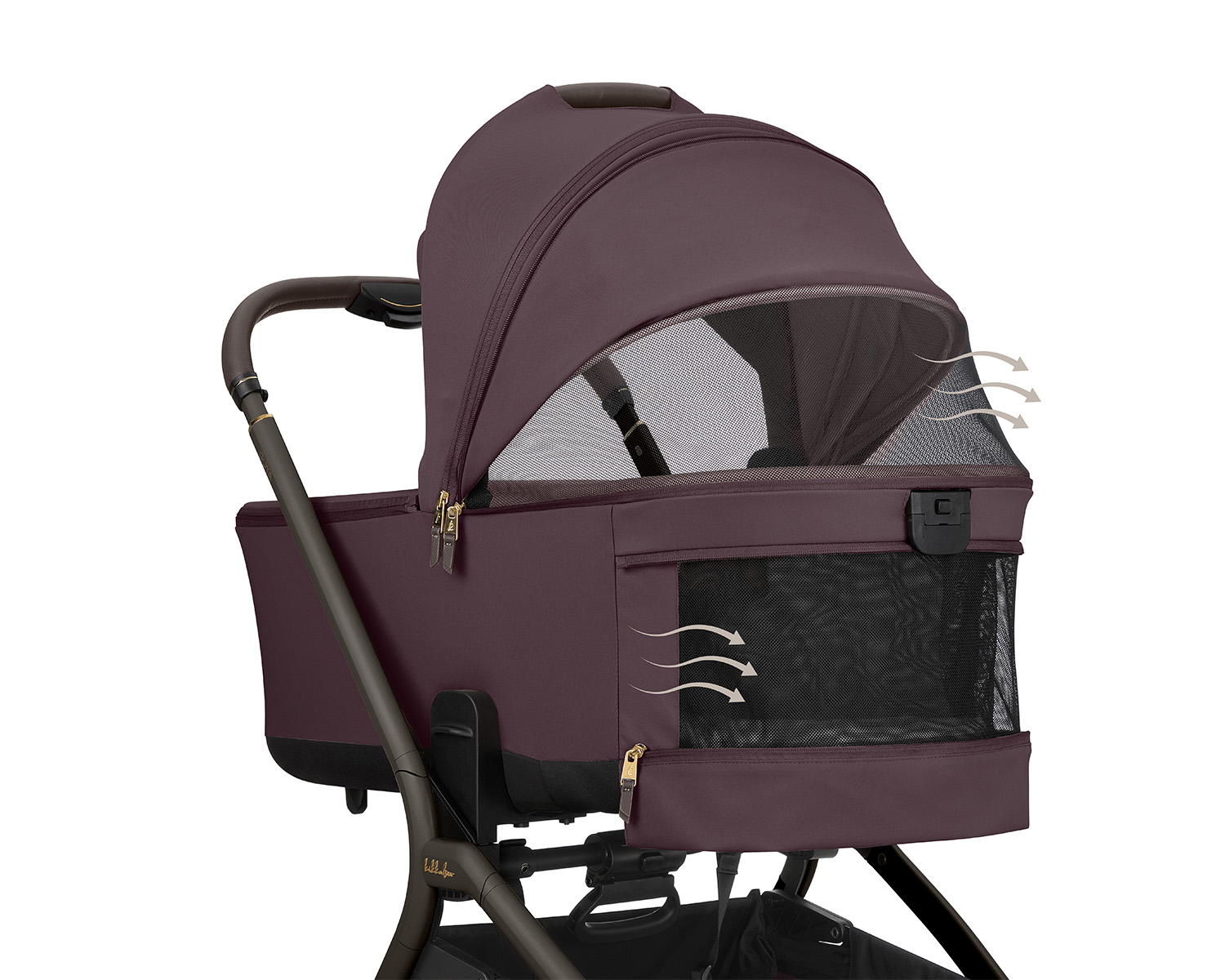 Um sistema inovador que permite fechar o carrinho com a alcofa incorporada! Com acabamentos de luxo e vários acessórios para o dia a dia!