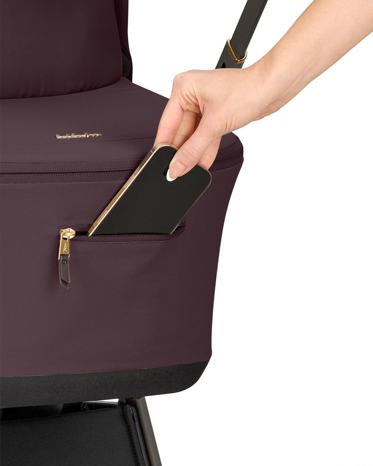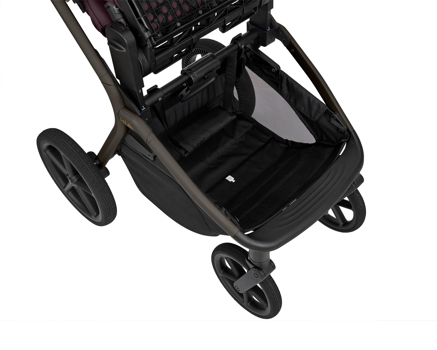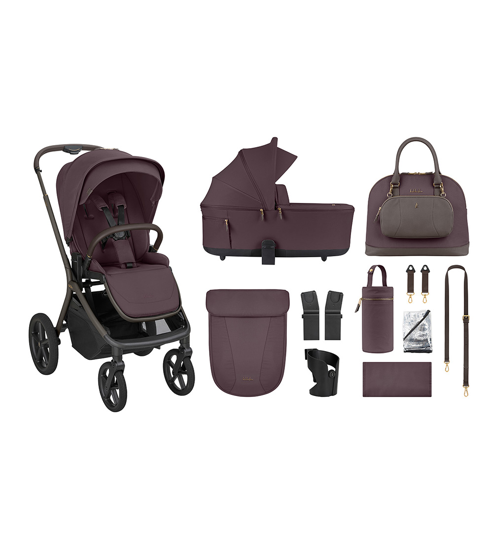 Acessórios incluídos: Saco de dormir para o assento e alcofa, adaptadores para cadeirinha de carro, bolsa de fraldas de luxo com trocador e bolsa térmica, capa de chuva, porta-copos e capota solar adicional.