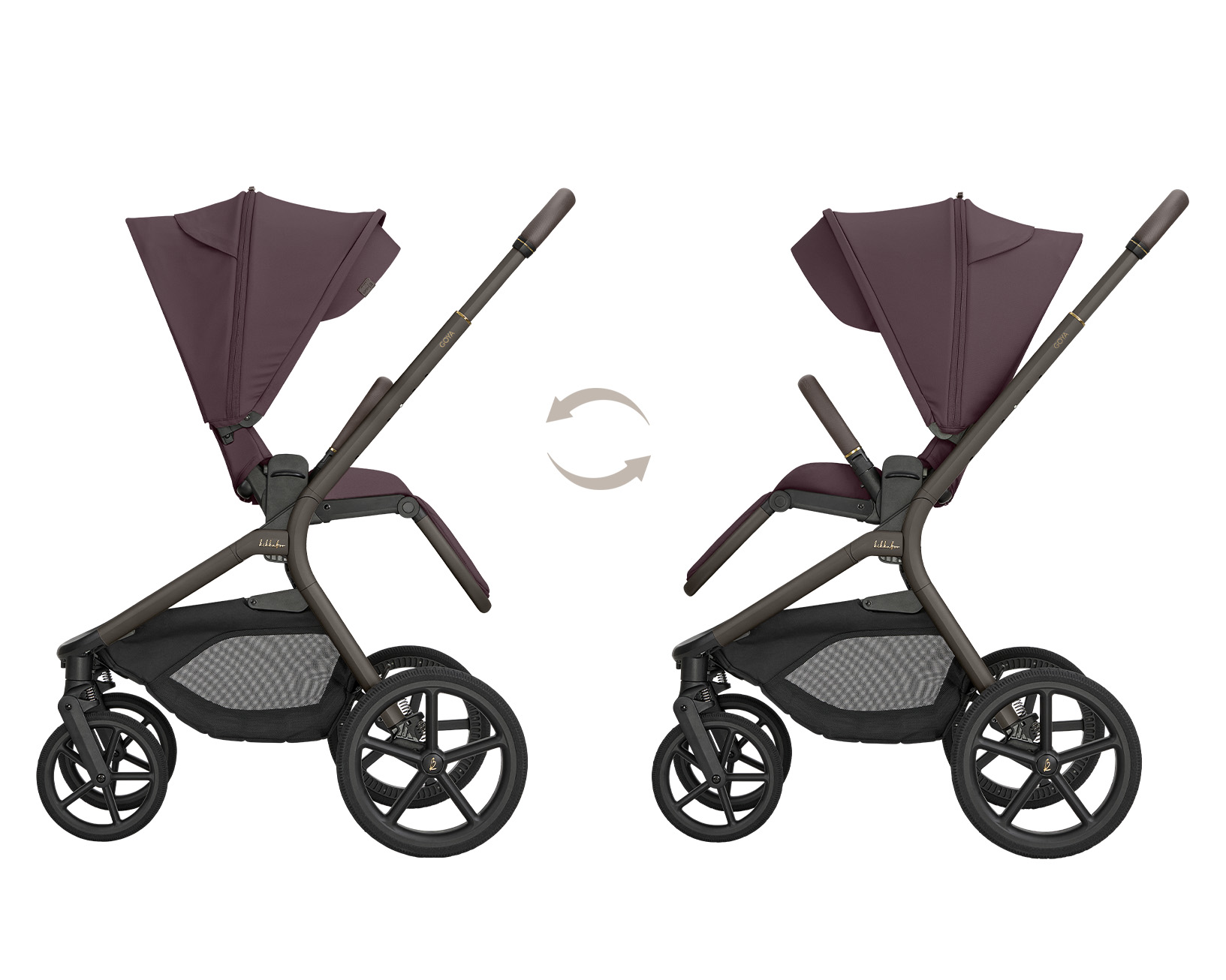• Assento reversível (virado para trás e para a frente) com botões de memória para libertação com uma só mão;