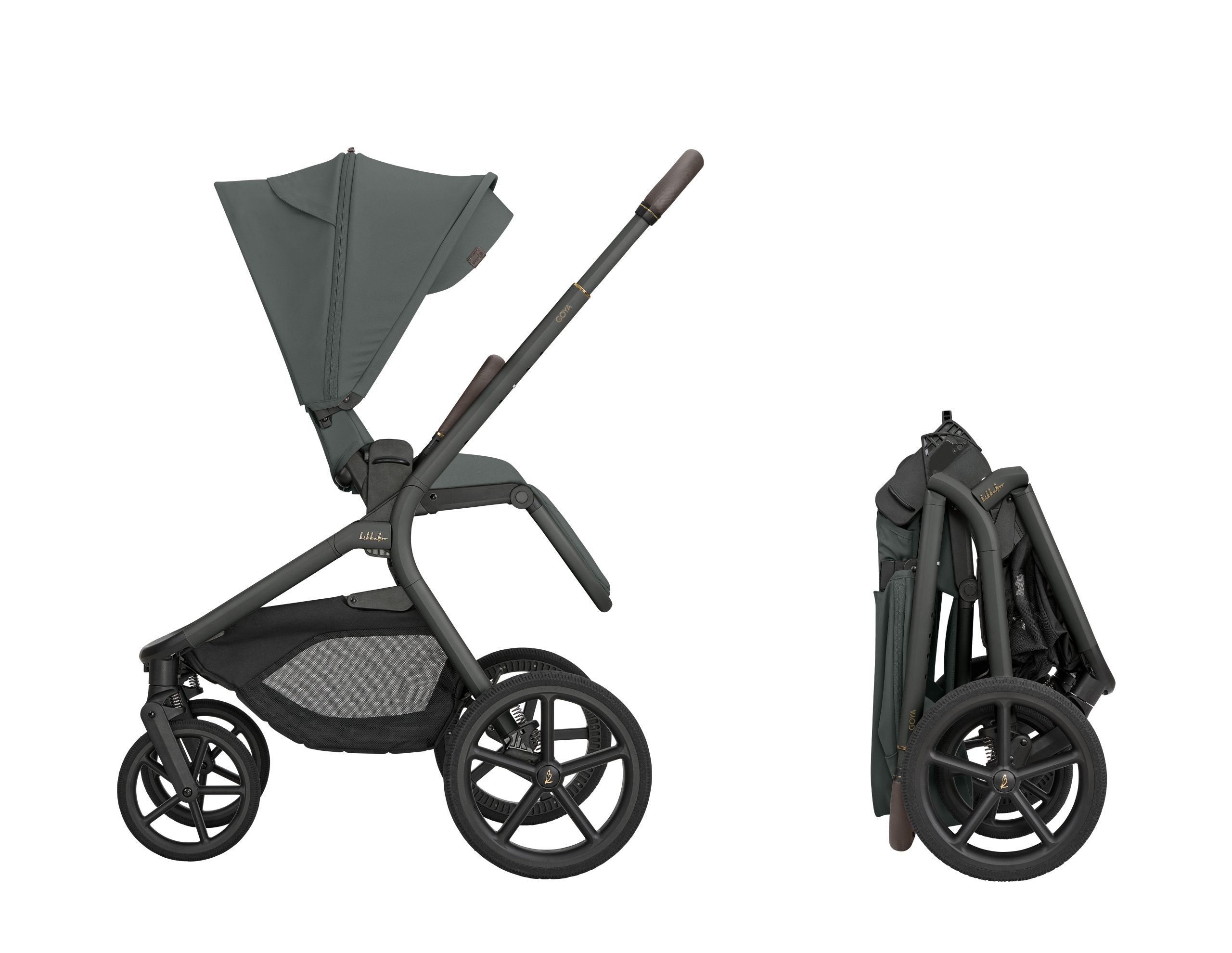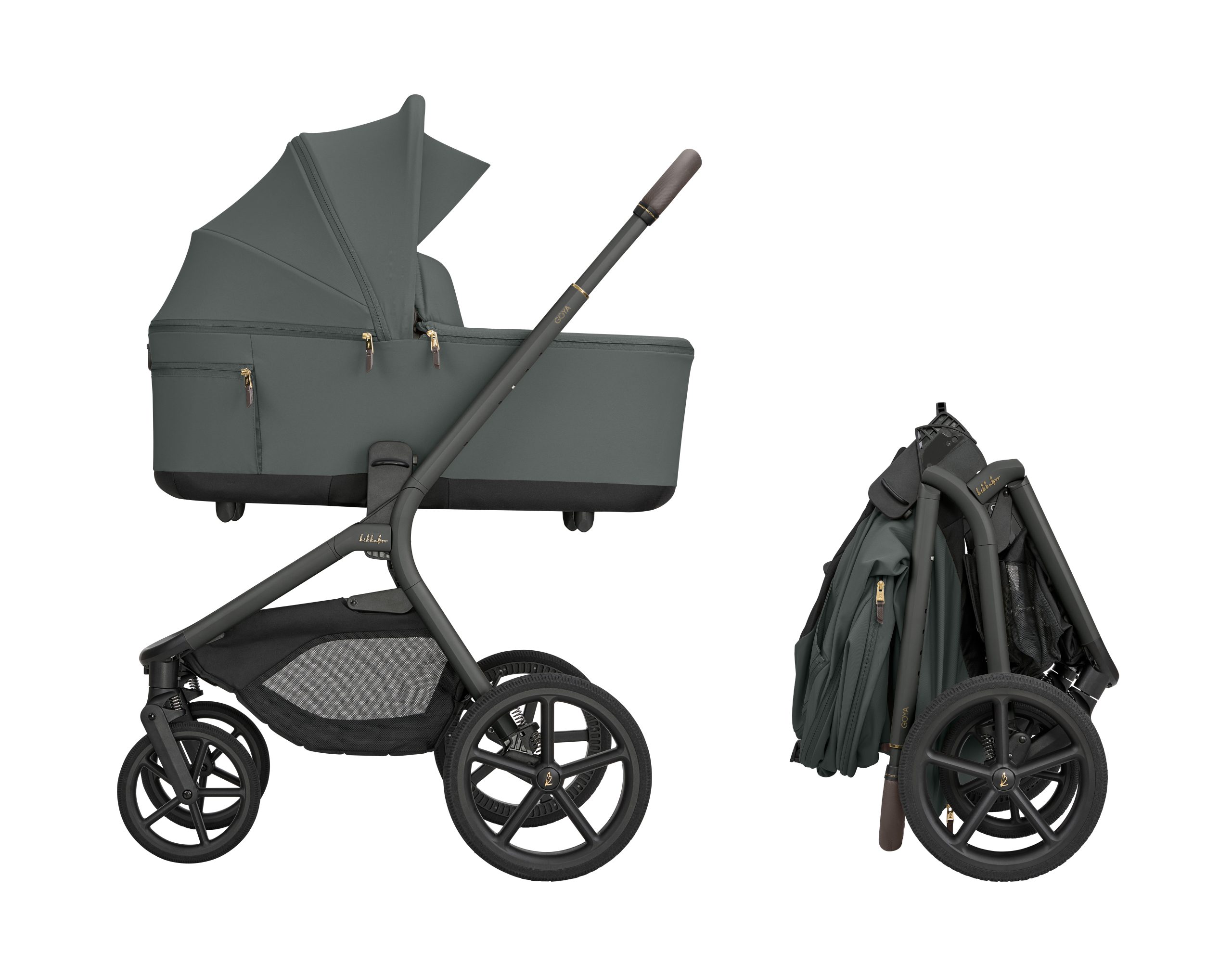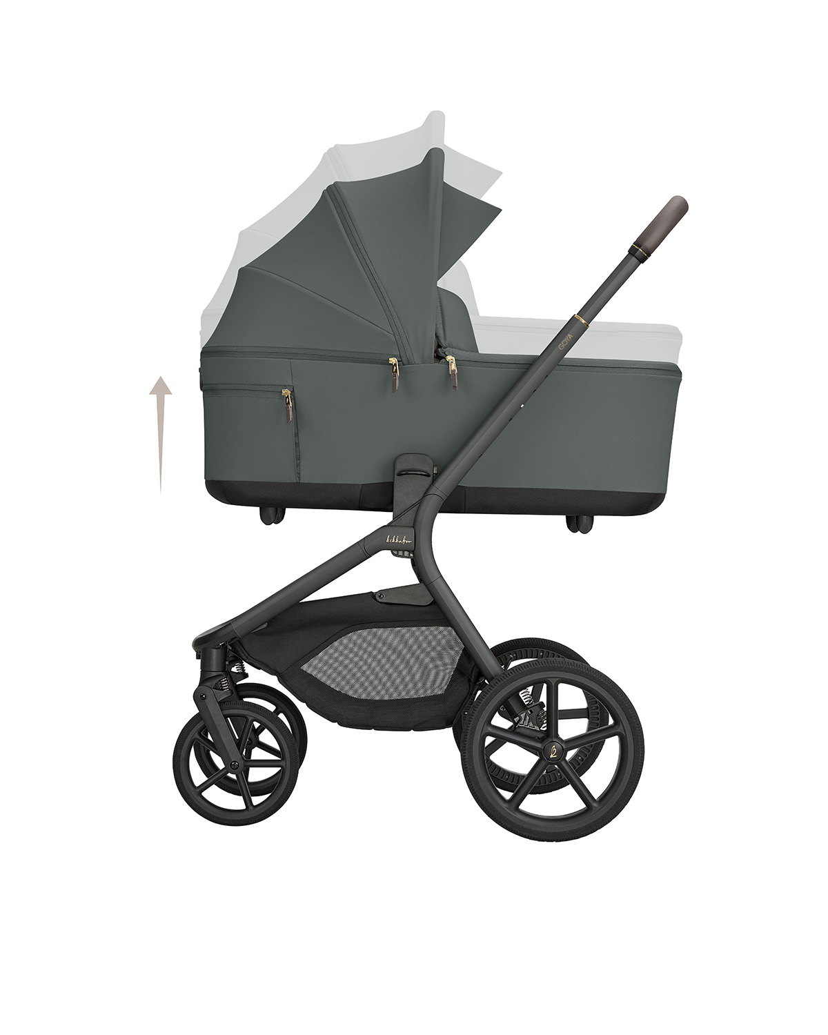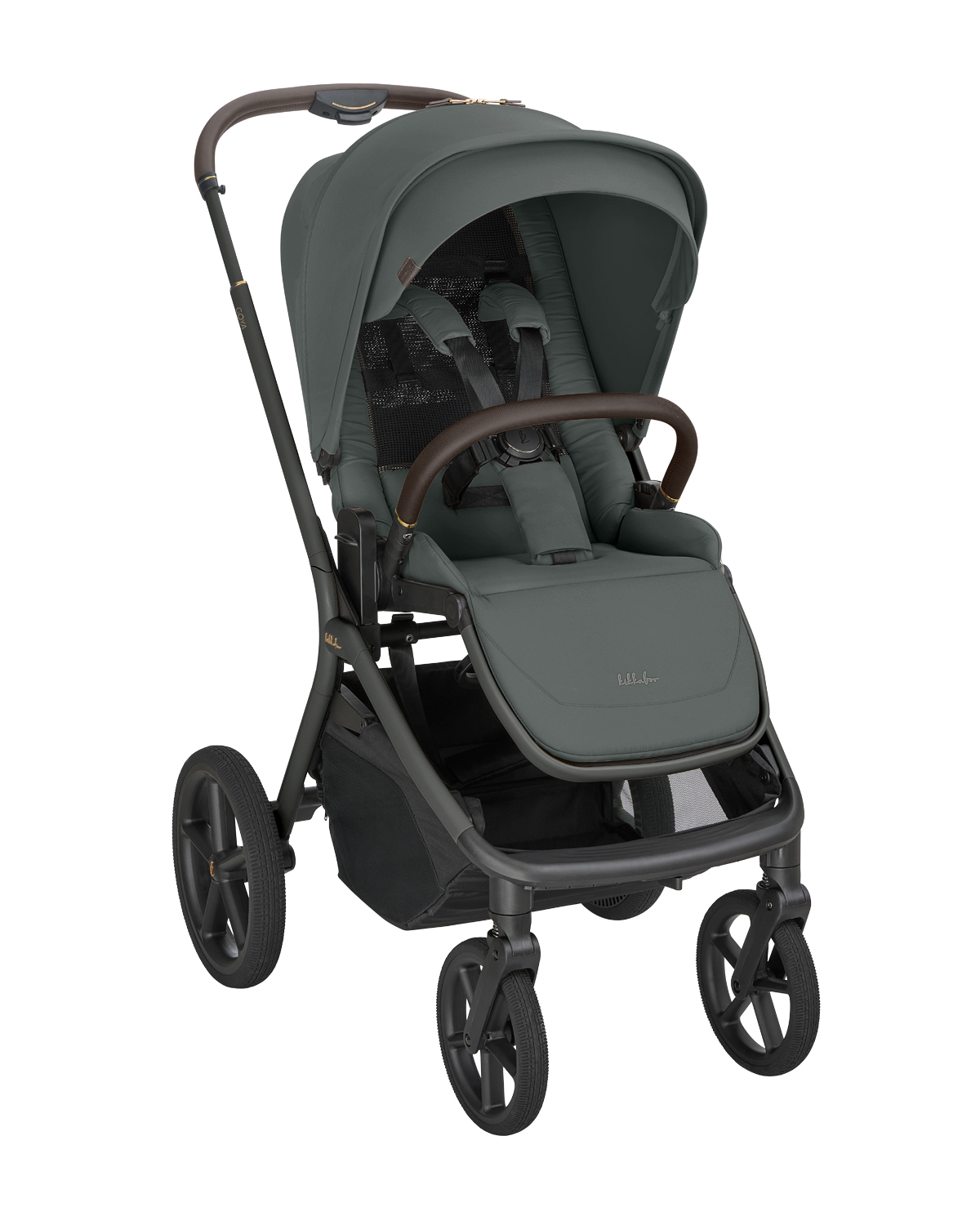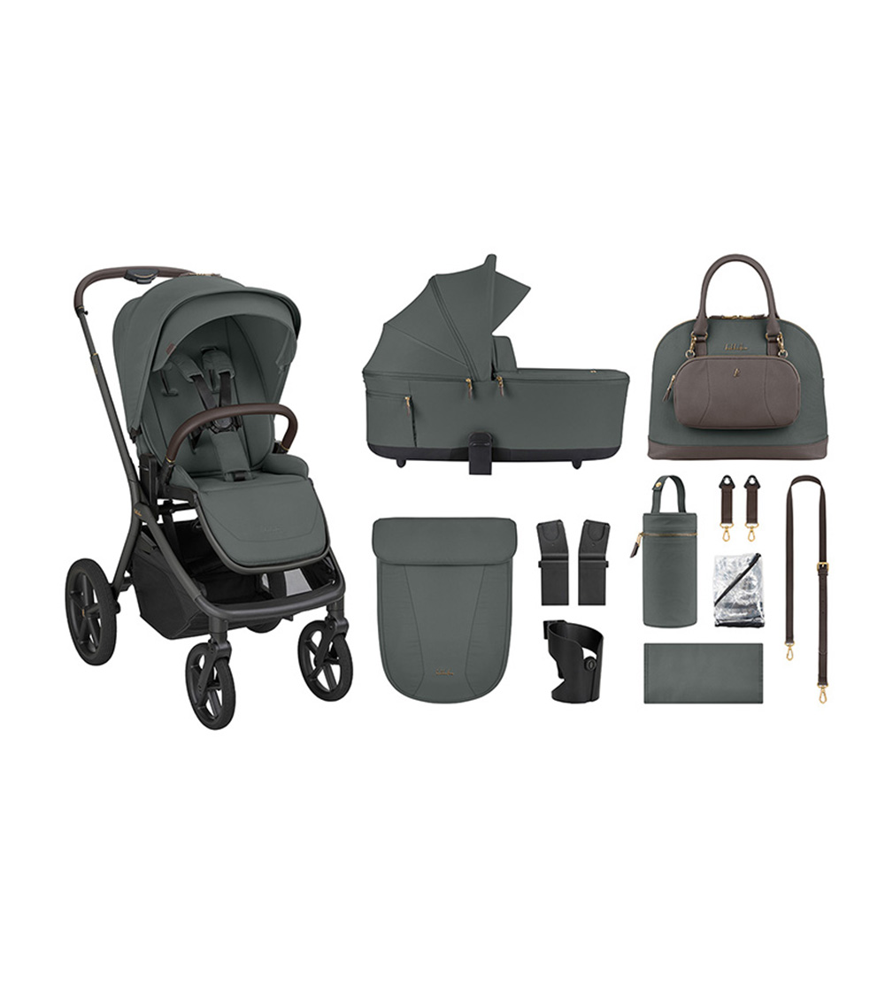 Acessórios incluídos: Saco de dormir para o assento e alcofa, adaptadores para cadeirinha de carro, bolsa de fraldas de luxo com trocador e bolsa térmica, capa de chuva, porta-copos e capota solar adicional.