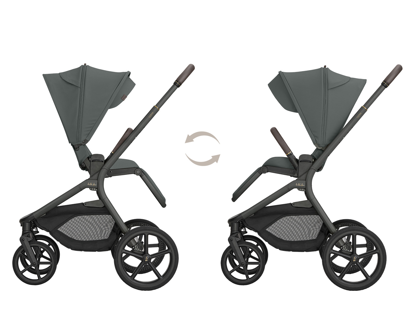 - Assento reversível (virado para trás e para a frente) com botões de memória para libertação com uma só mão;