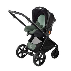 - Capota extensível com tecidos 60% reciclados, com proteção solar UPF50, repelente de água, corta-vento e respirável.