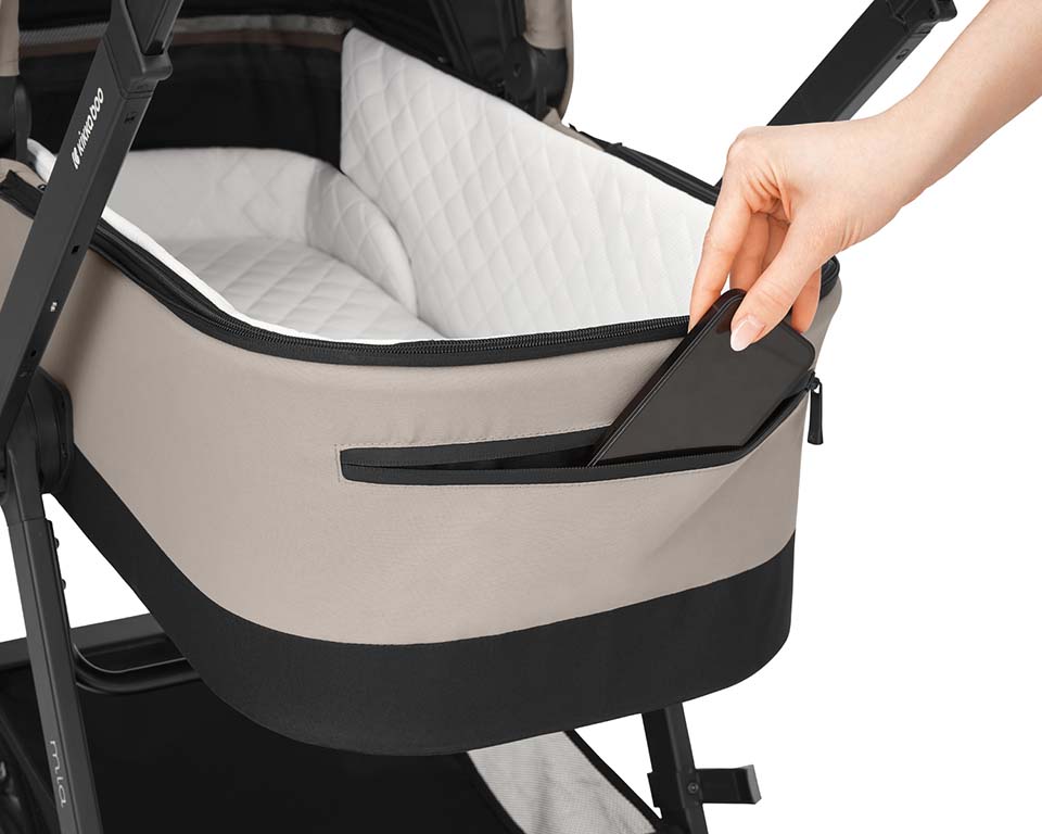 Acessórios incluídos: Saco para os pés do berço, adaptadores, bolsa para fraldas.