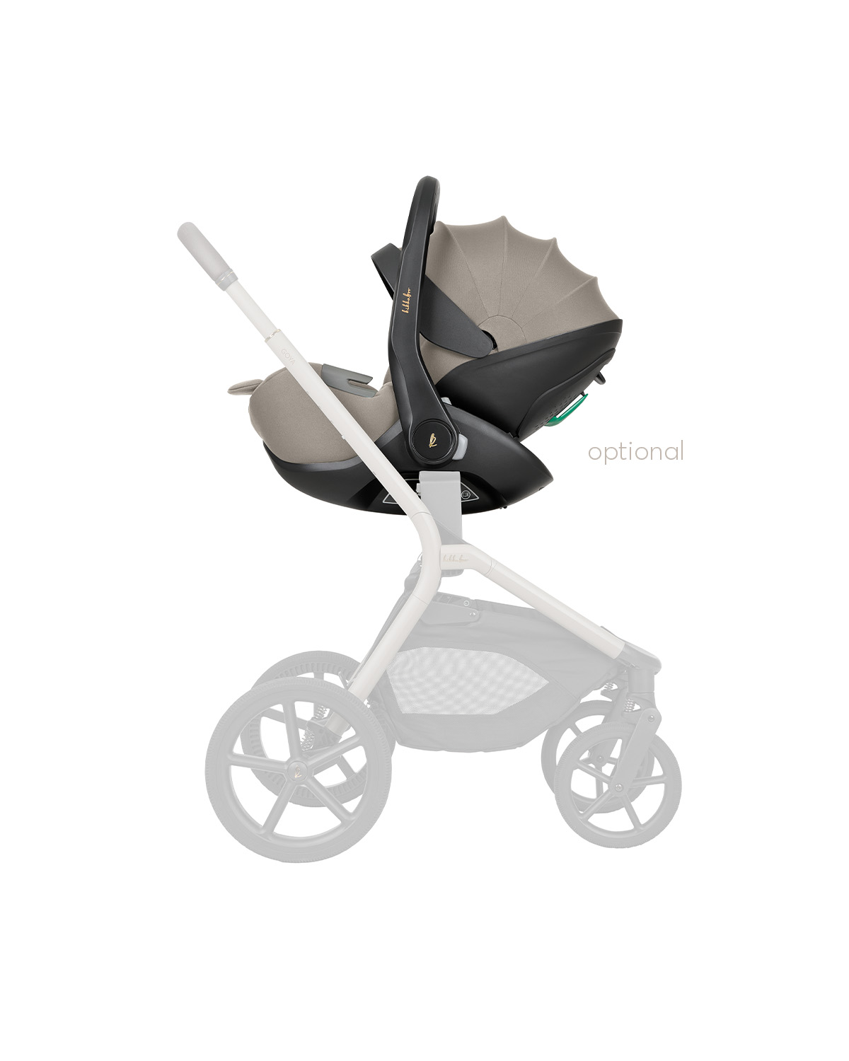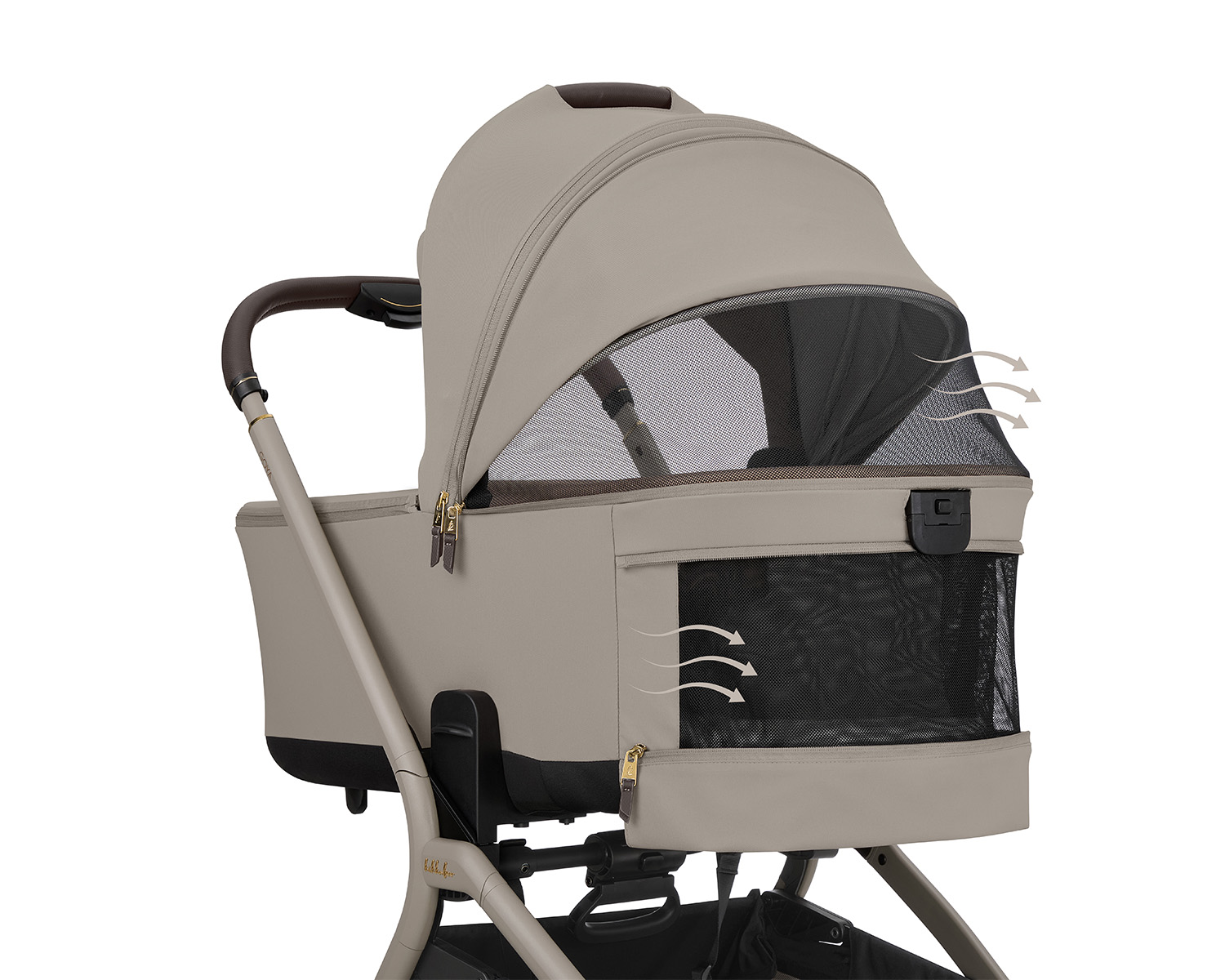 Acessórios incluídos: Saco de dormir para o assento e alcofa, adaptadores para cadeirinha de carro, bolsa de fraldas de luxo com trocador e bolsa térmica, capa de chuva, porta-copos e capota solar adicional.