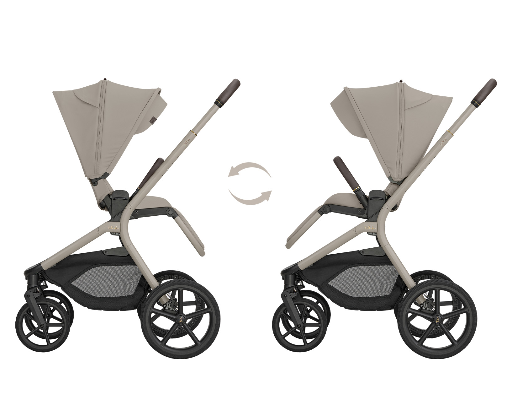 - Assento reversível (virado para trás e para a frente) com botões de memória para libertação com uma só mão;