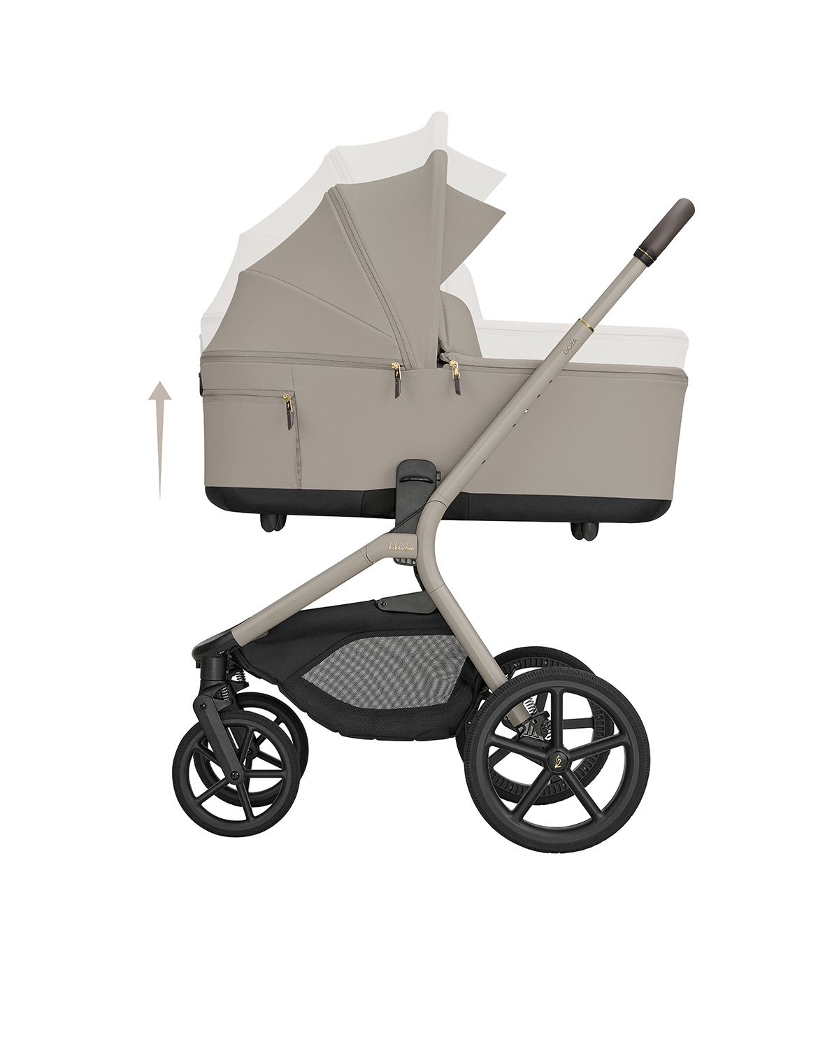 - Capota de sol adicional para máxima proteção solar;